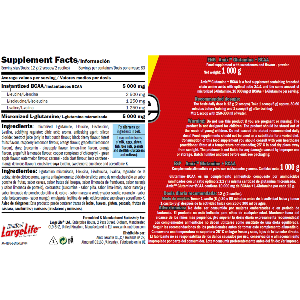 أميكس جلوتامين+بكا كولا بودرة أناناس طازج - 1000 جم