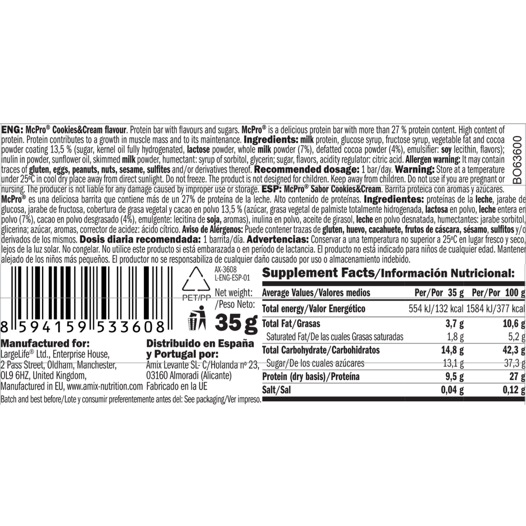 أميكس ماك برو بروتين بار كوكي-كريمة - 24 × 35 جم