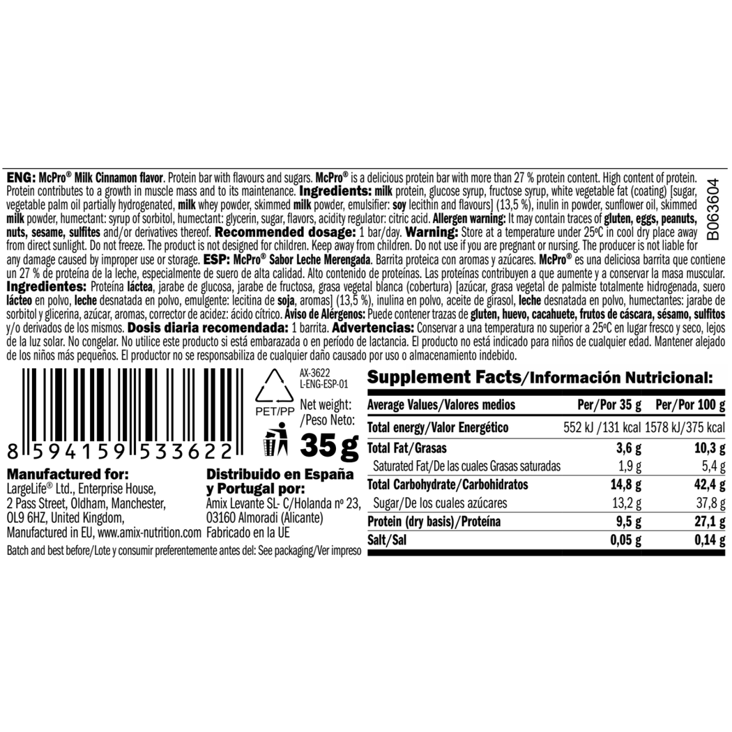 أميكس مكبرو بروتين بار الحليب بالحليب مع القرفة - 24 × 35 جم