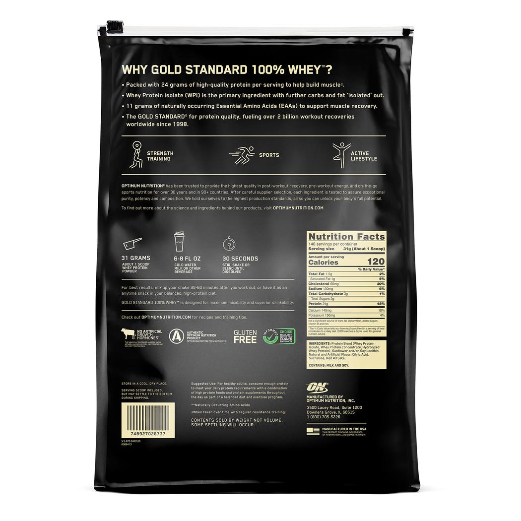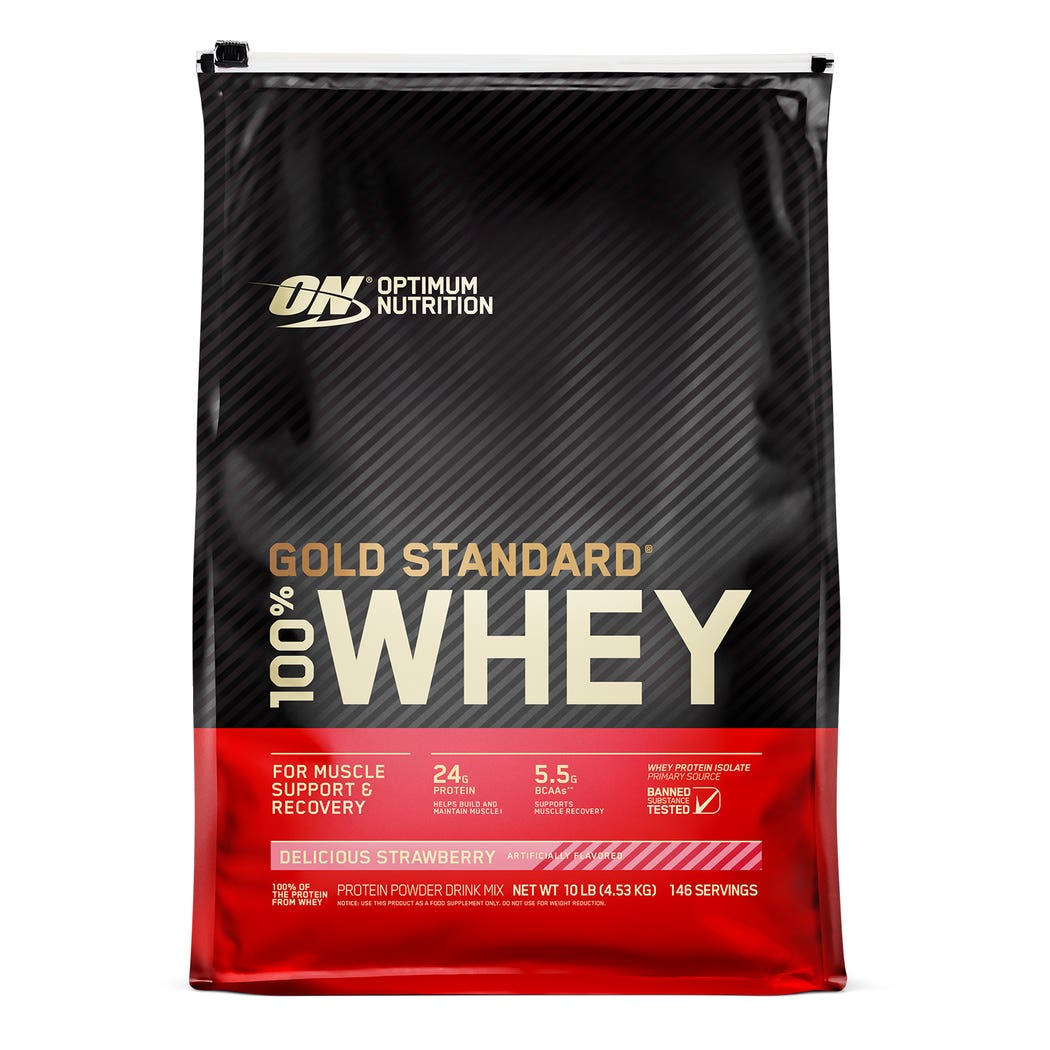 أوبتيموم نيوترشن جولد ستاندرد 100% واي بروتين بنكهة الفراولة - 4.53 كجم