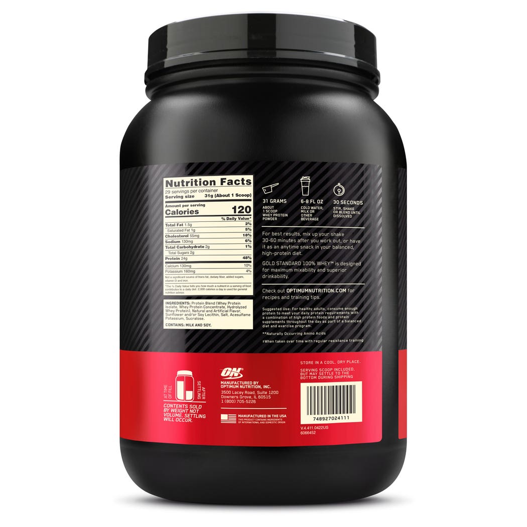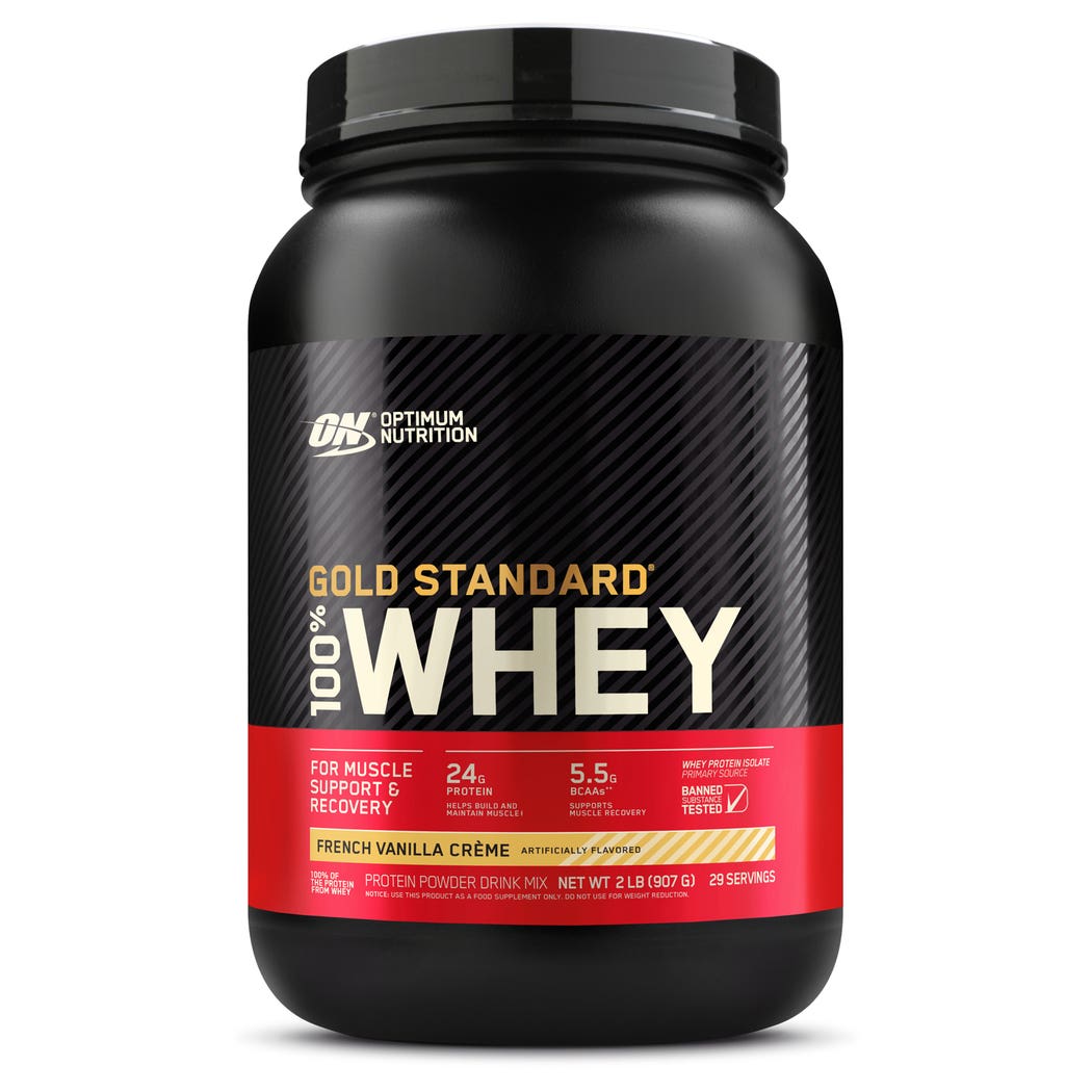 أوبتيموم نيوترشن جولد ستاندرد 100% واي بروتين بنكهة كريم الفانيليا الفرنسية - 907 جم