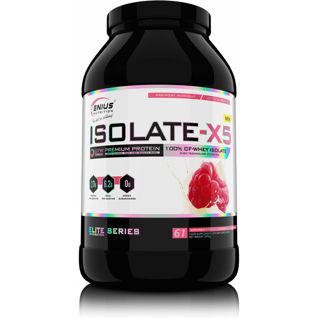جينيس نيوترشن أيزوليت-إكس5 واي بروتين مع بي سي إيه إيه 61 حصة 2 كجم مسحوق بالتوت والشوكولاتة البيضاء