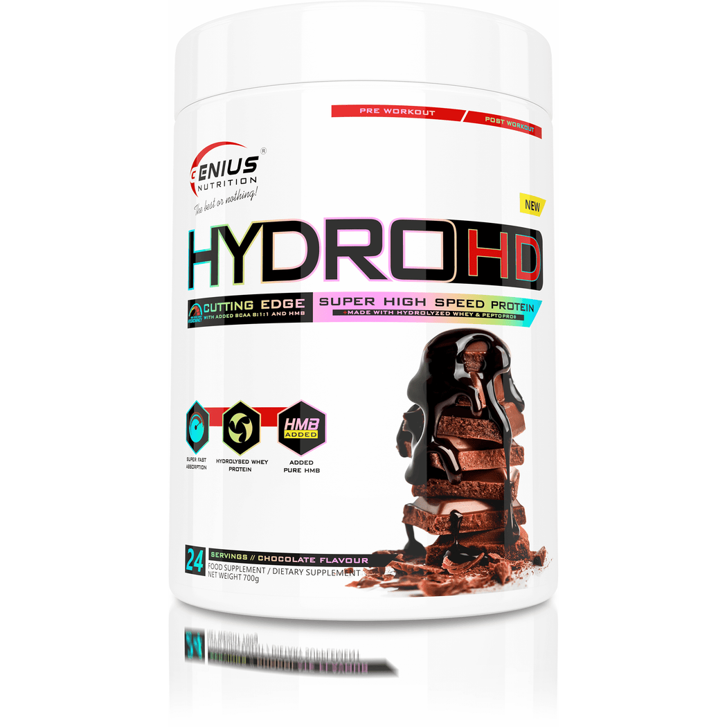 جينيس نيوترشن هيدرو-إتش دي واي بروتين مع بي سي إيه إيه وإتش إم بي 24 حصة 700 جم مسحوق بالشوكولاتة