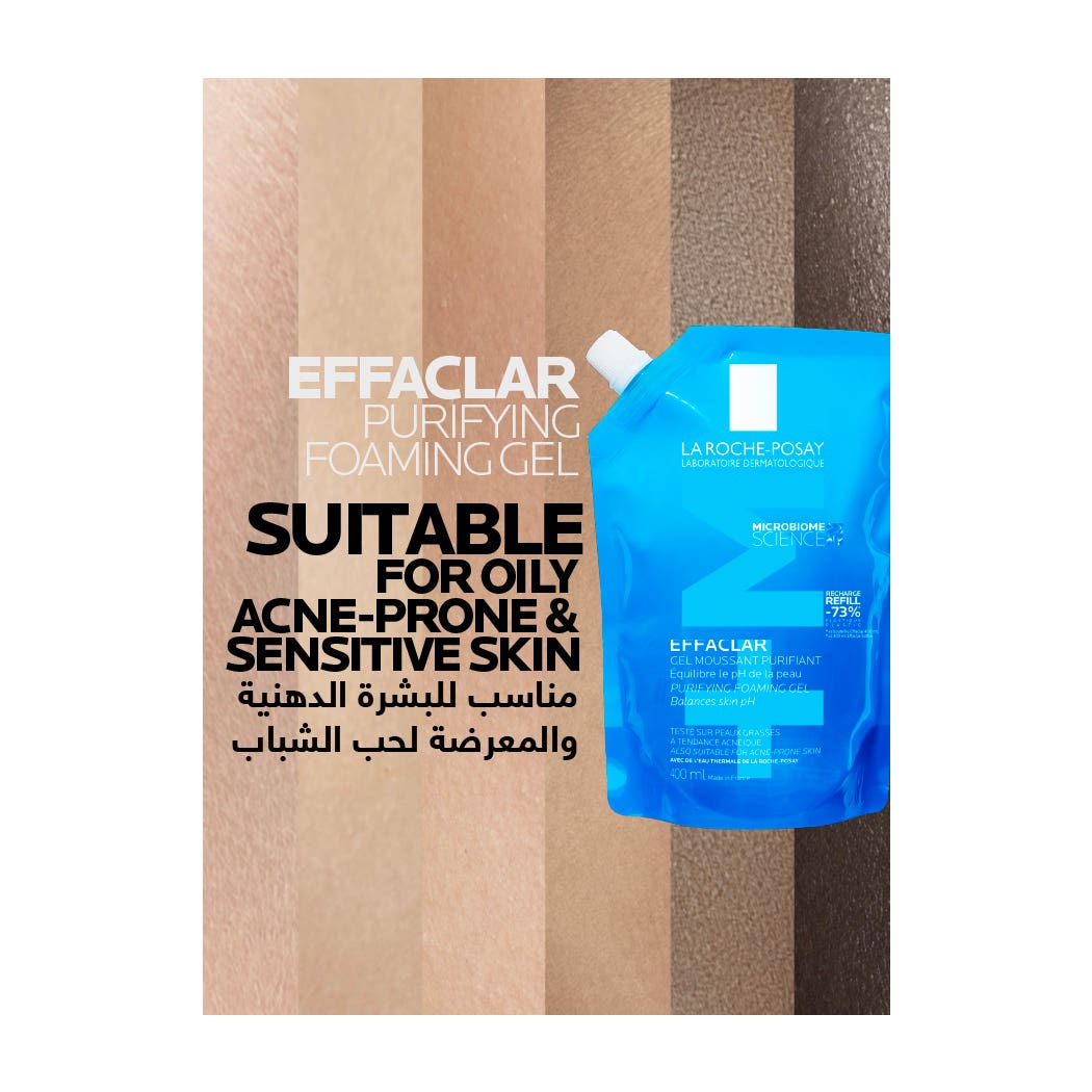 لا روش بوزيه إيفاكلار جل غسول رغوي مُنظف للبشرة الدهنية والمعرضة لحب الشباب إعادة تعبئة 400مل